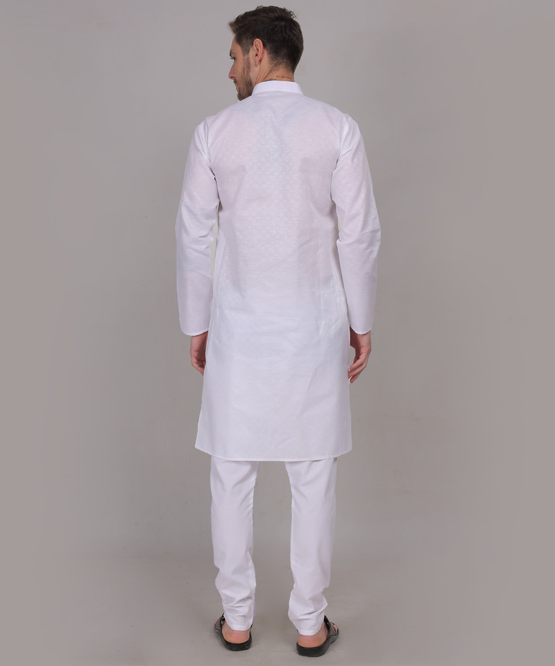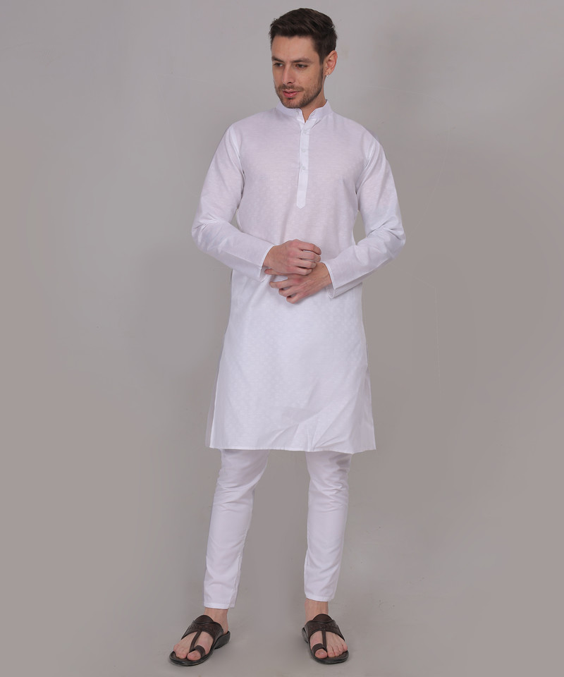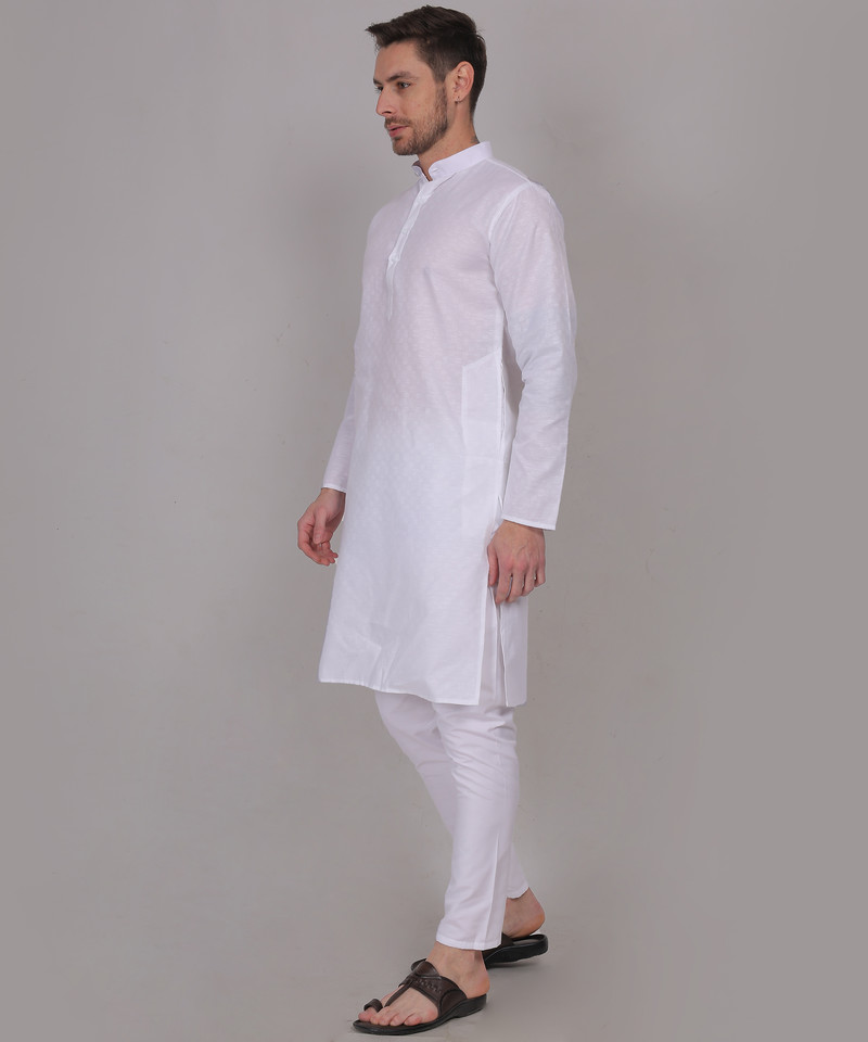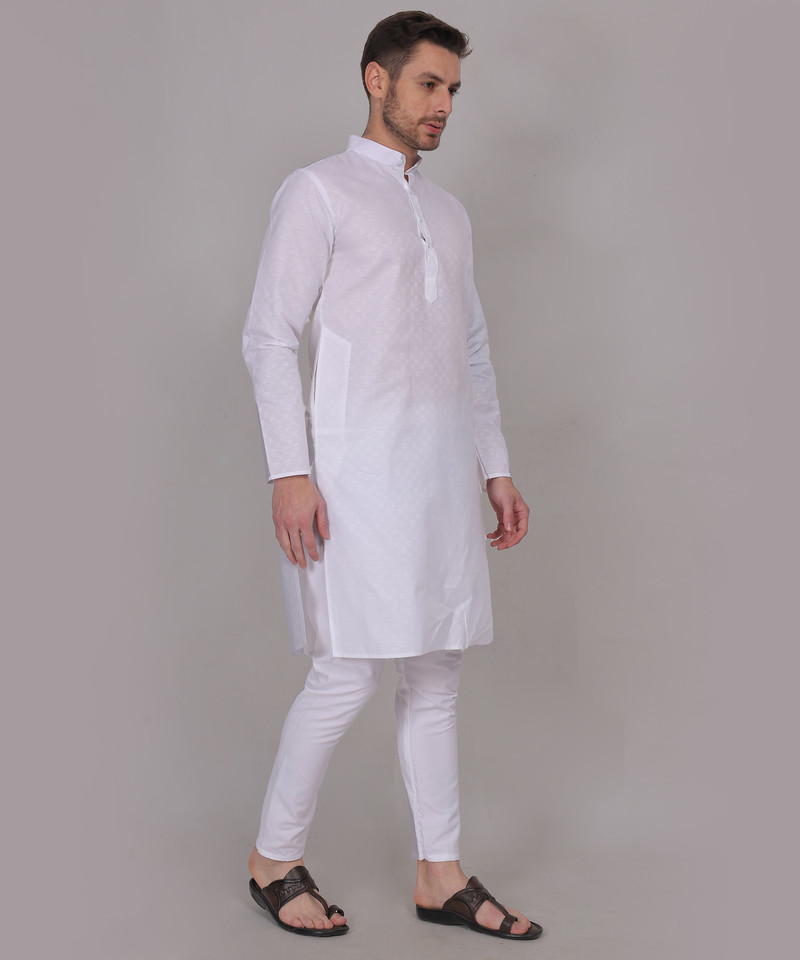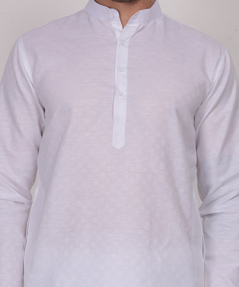 Charvi – White Cotton Self Design Woven Mens Kurta